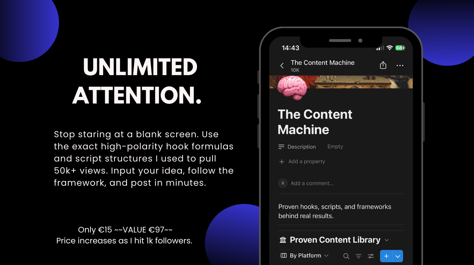 €15 one time — less than a week of wasted scrolling.